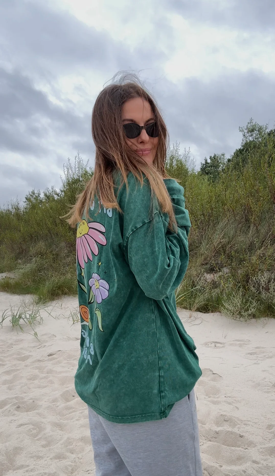 - Oversized krój z obniżoną linią ramion (drop shoulder)