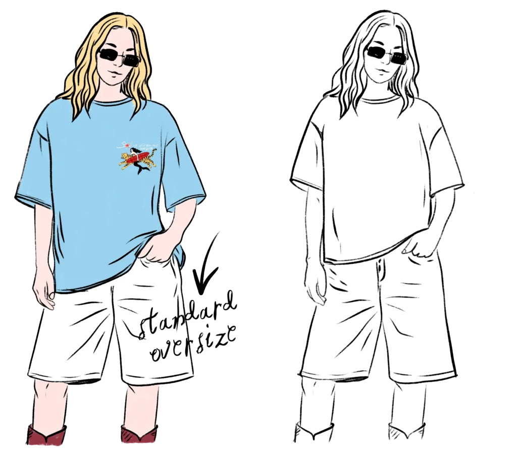 • Oversized krój z obniżoną linią ramion (drop shoulder)